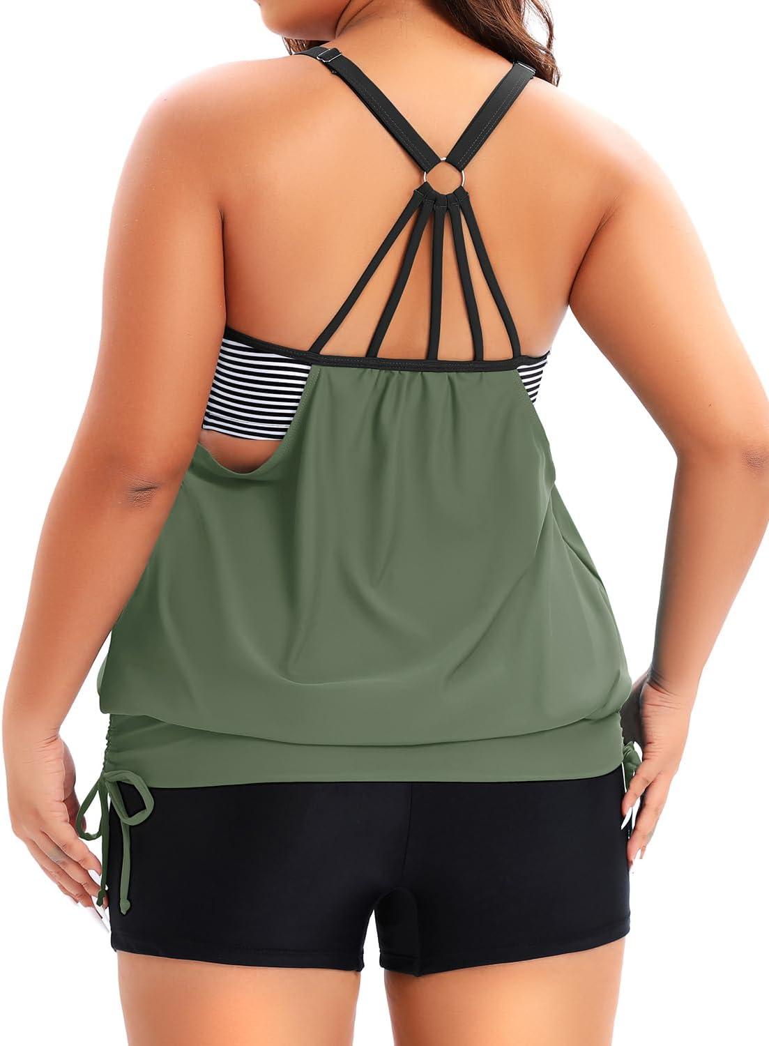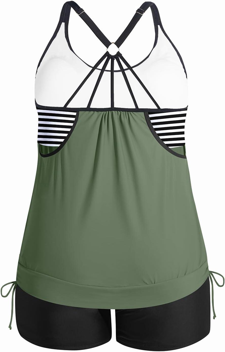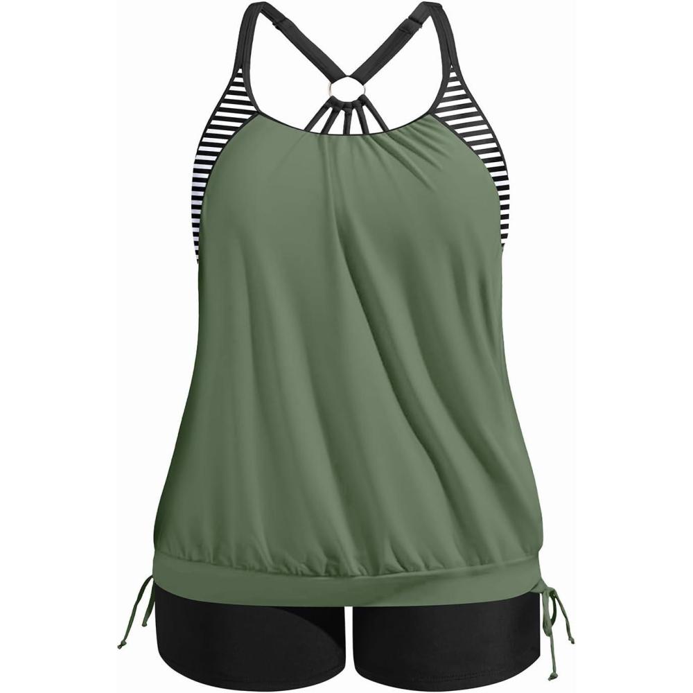 Holipick Blouson Tankini Swimsuits for Women - Two Piece Tummy Control Bathing Suit with Shorts Modest Swimwear(Army Green)