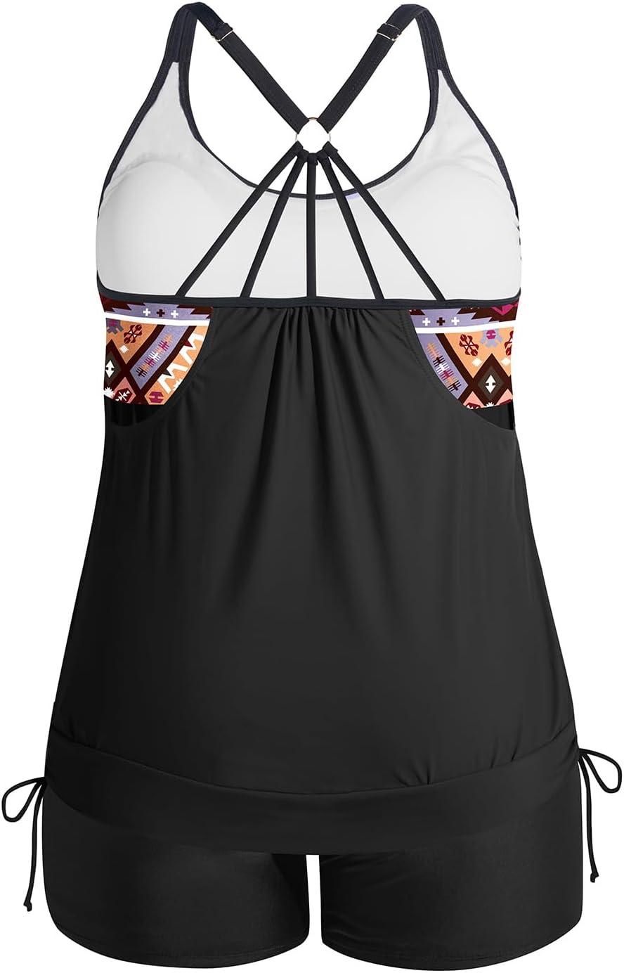 Holipick Blouson Tankini Swimsuits for Women – Two Piece Tummy Control Bathing Suit with Shorts Modest Swimwear(Black Tribal)