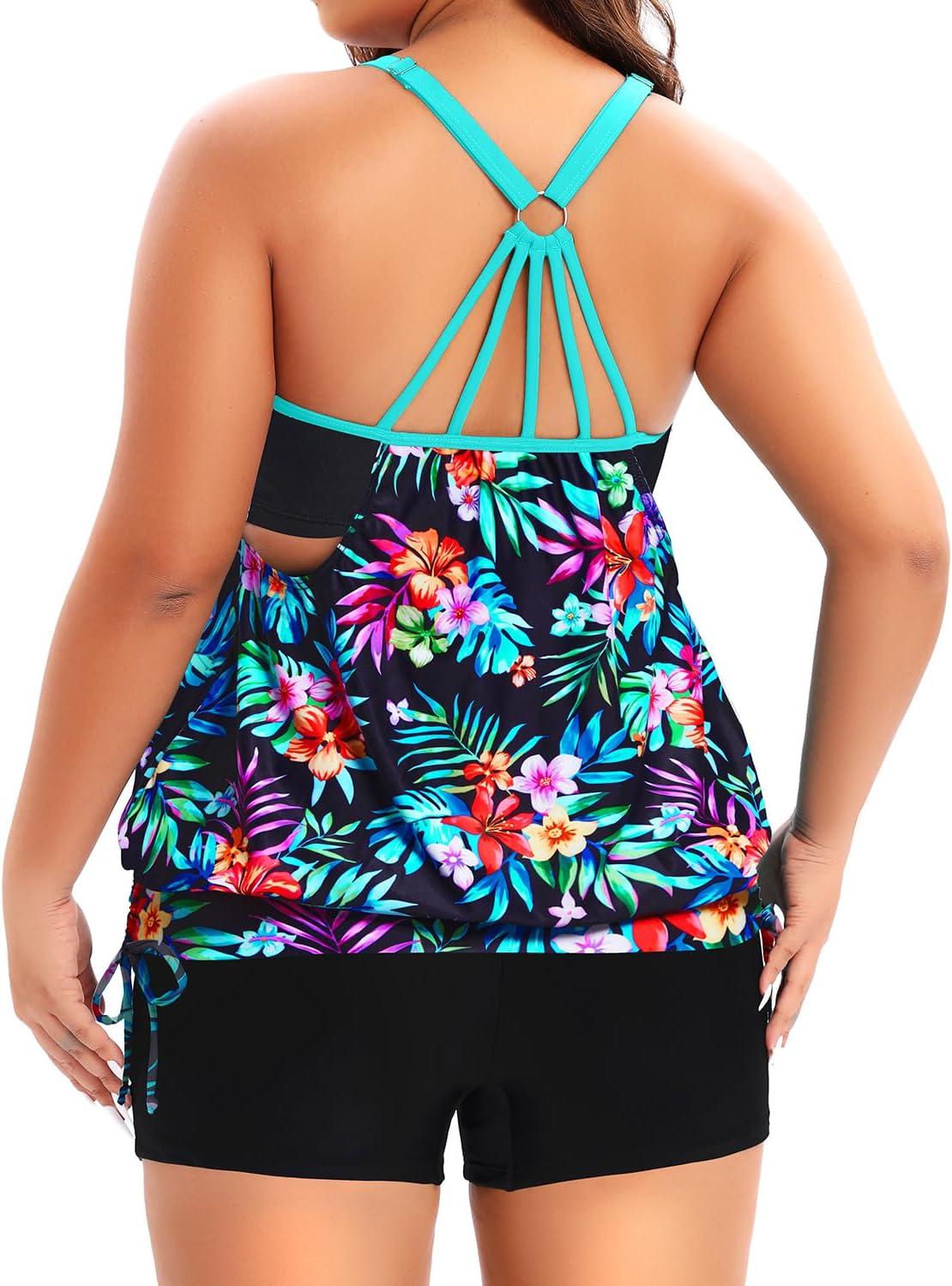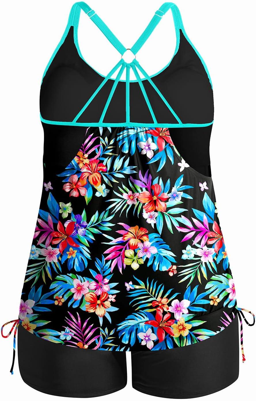 Holipick Blouson Tankini Swimsuits for Women - Two Piece Tummy Control Bathing Suit with Shorts Modest Swimwear(Colorful Floral)