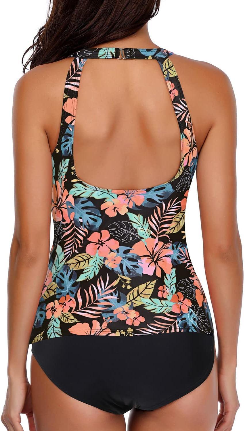Holipick High Neck Tankini Top Bathing Suit Tops for Women Tummy Control Tank Tops Swimsuits(Black Pink Flowers)