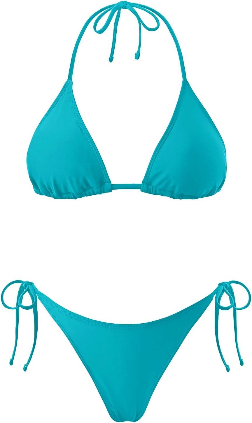 Holipick Two Piece Triangle Bikini Sets for Women String Bathing Suit Halter Top with Side Tie Bikini Bottom(Teal)