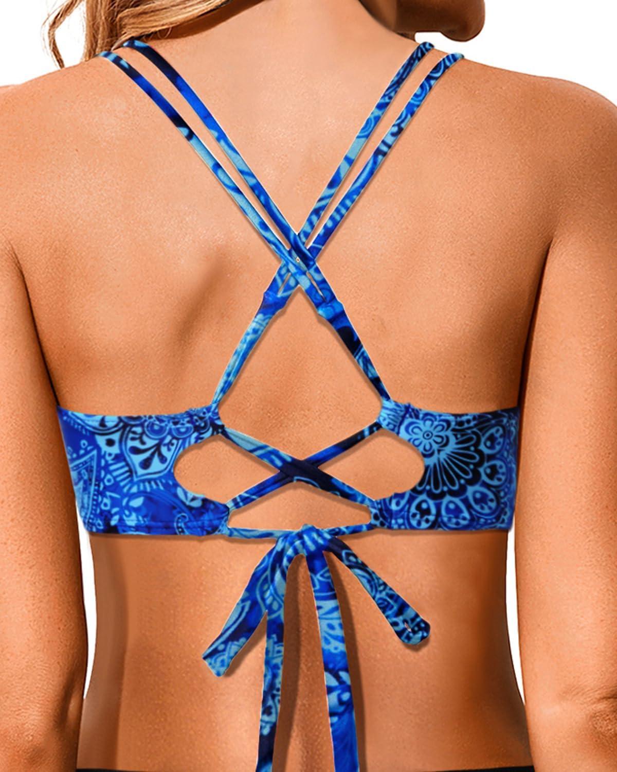 Holipick Women Black High Waisted Bikini Twist Front Swimsuits 2 Piece Lace Up Bikini top with Tummy Control Swims(Blue Paisley)