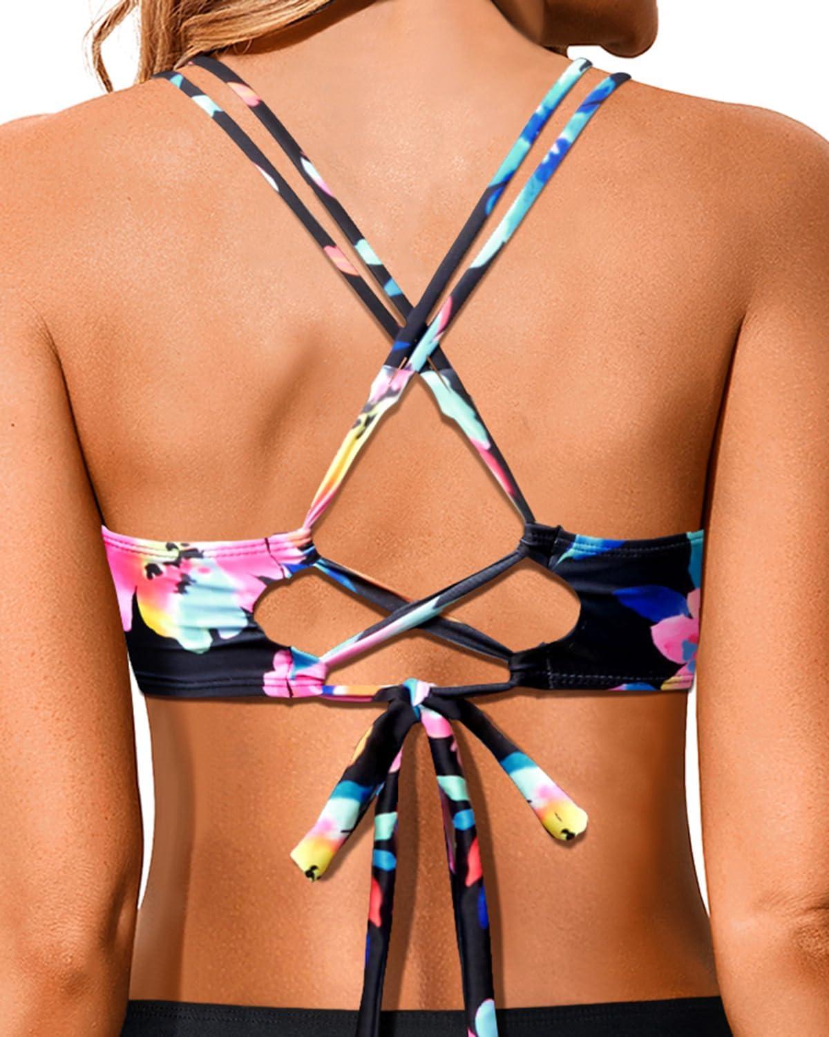 Holipick Women Black High Waisted Bikini Twist Front Swimsuits 2 Piece Lace Up Bikini top with Tummy Control Swims(Colorful Flower)