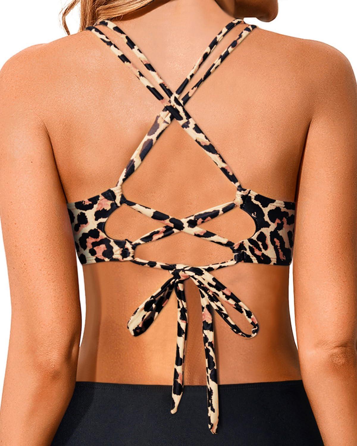 Holipick Women Black High Waisted Bikini Twist Front Swimsuits 2 Piece Lace Up Bikini top with Tummy Control Swims(Leopard)