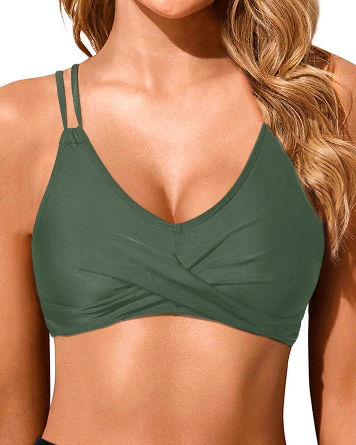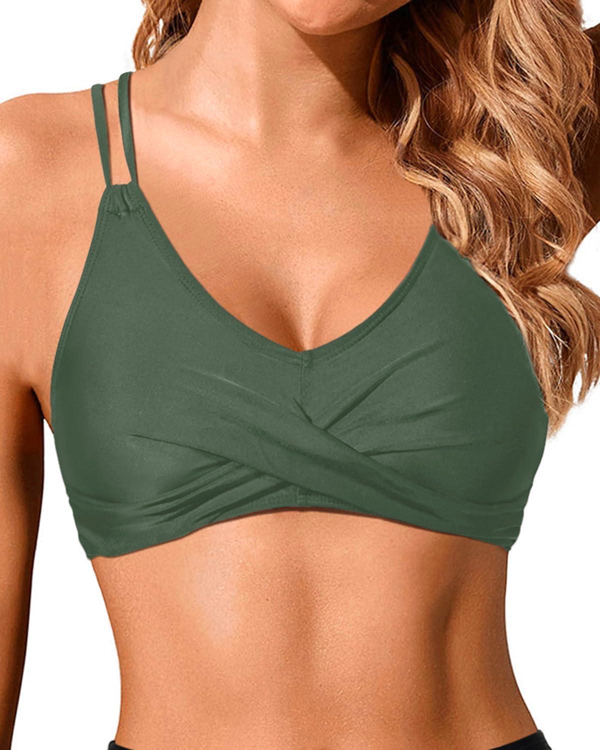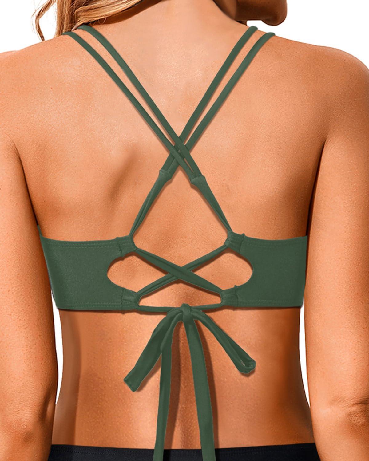 Holipick Women Black High Waisted Bikini Twist Front Swimsuits 2 Piece Lace Up Bikini top with Tummy Control Swims(Olive Green)