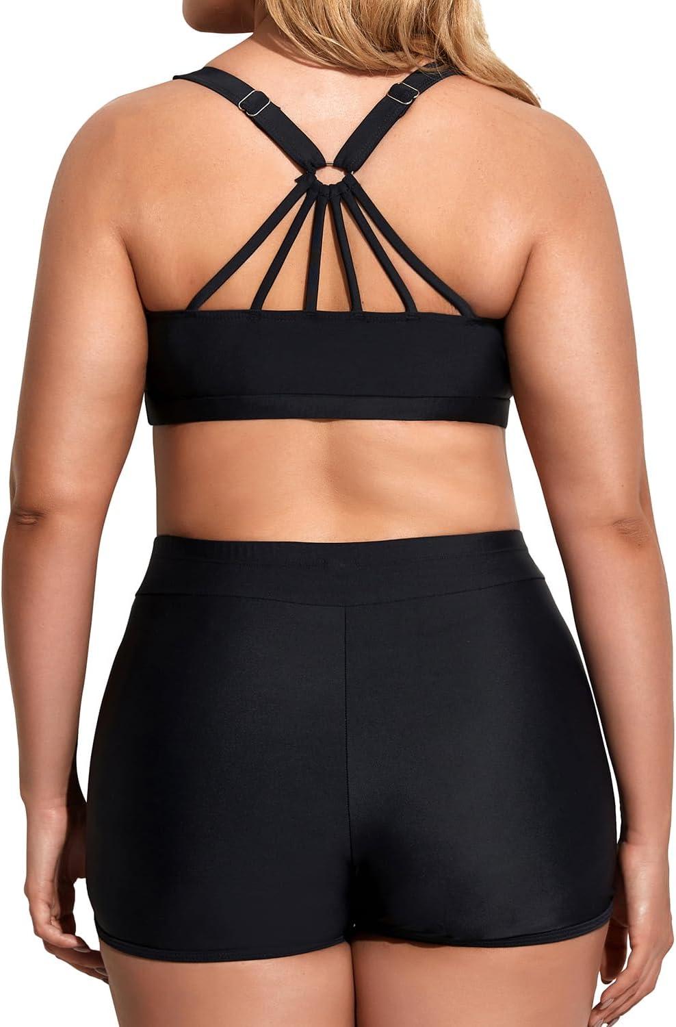 Holipick Women Plus Size 3 Piece Tankini Swimsuits Athletic Bathing Suits with Shorts(Pink Gradient)