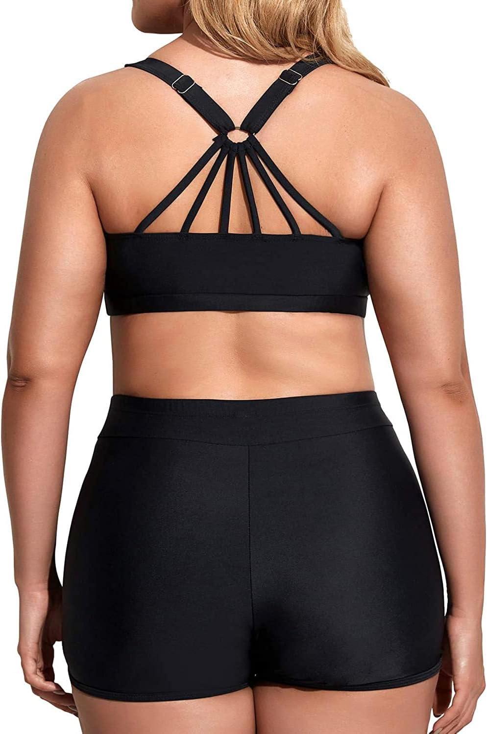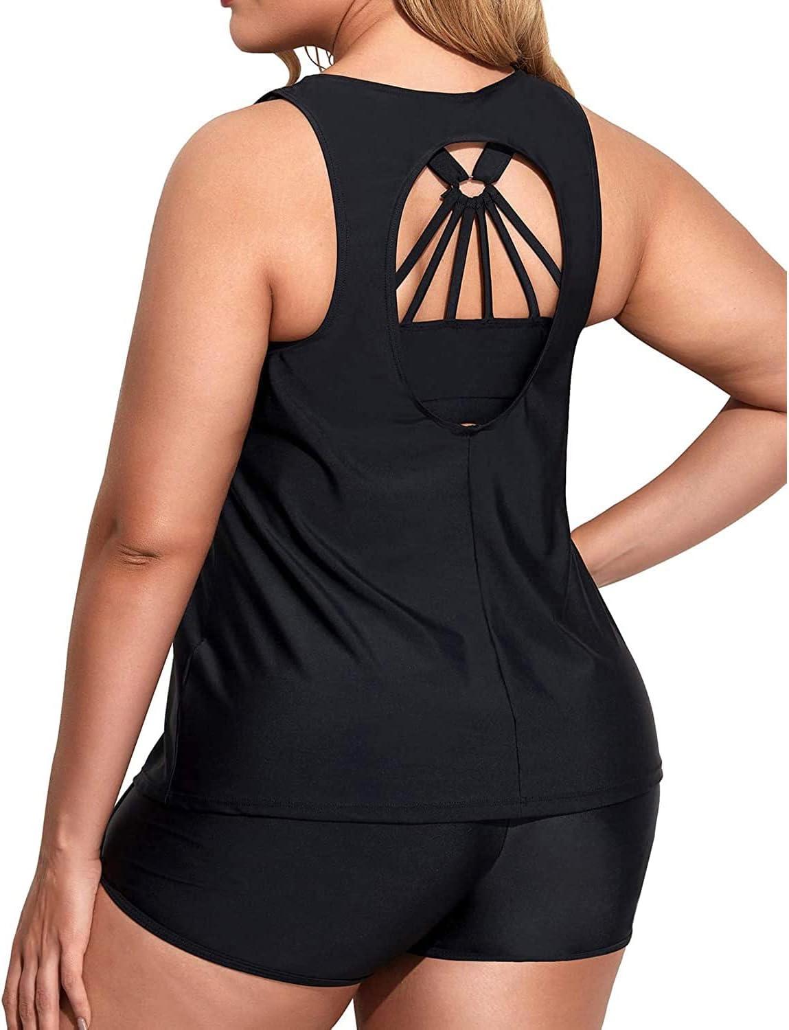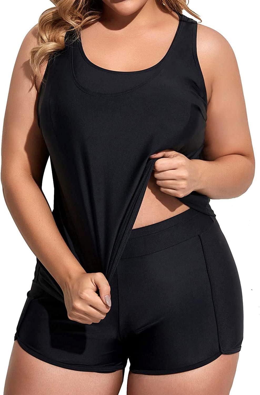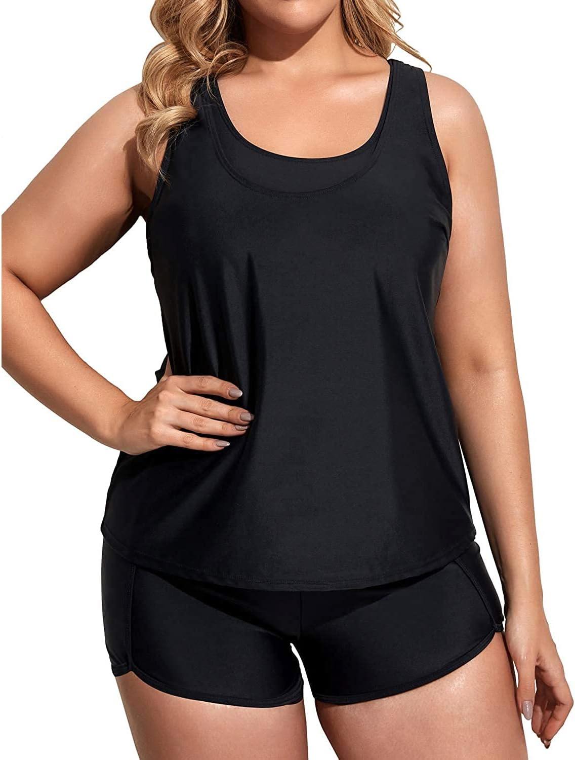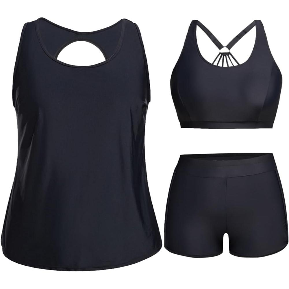 Holipick Women Plus Size 3 Piece Tankini Swimsuits(Black)