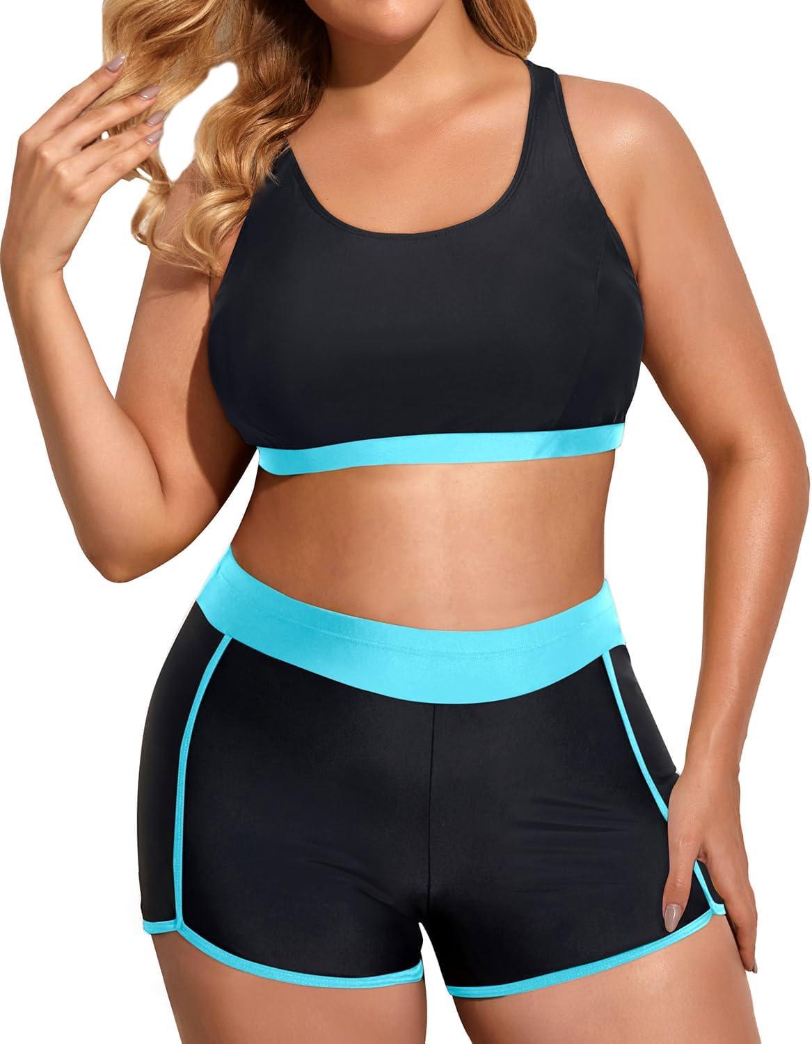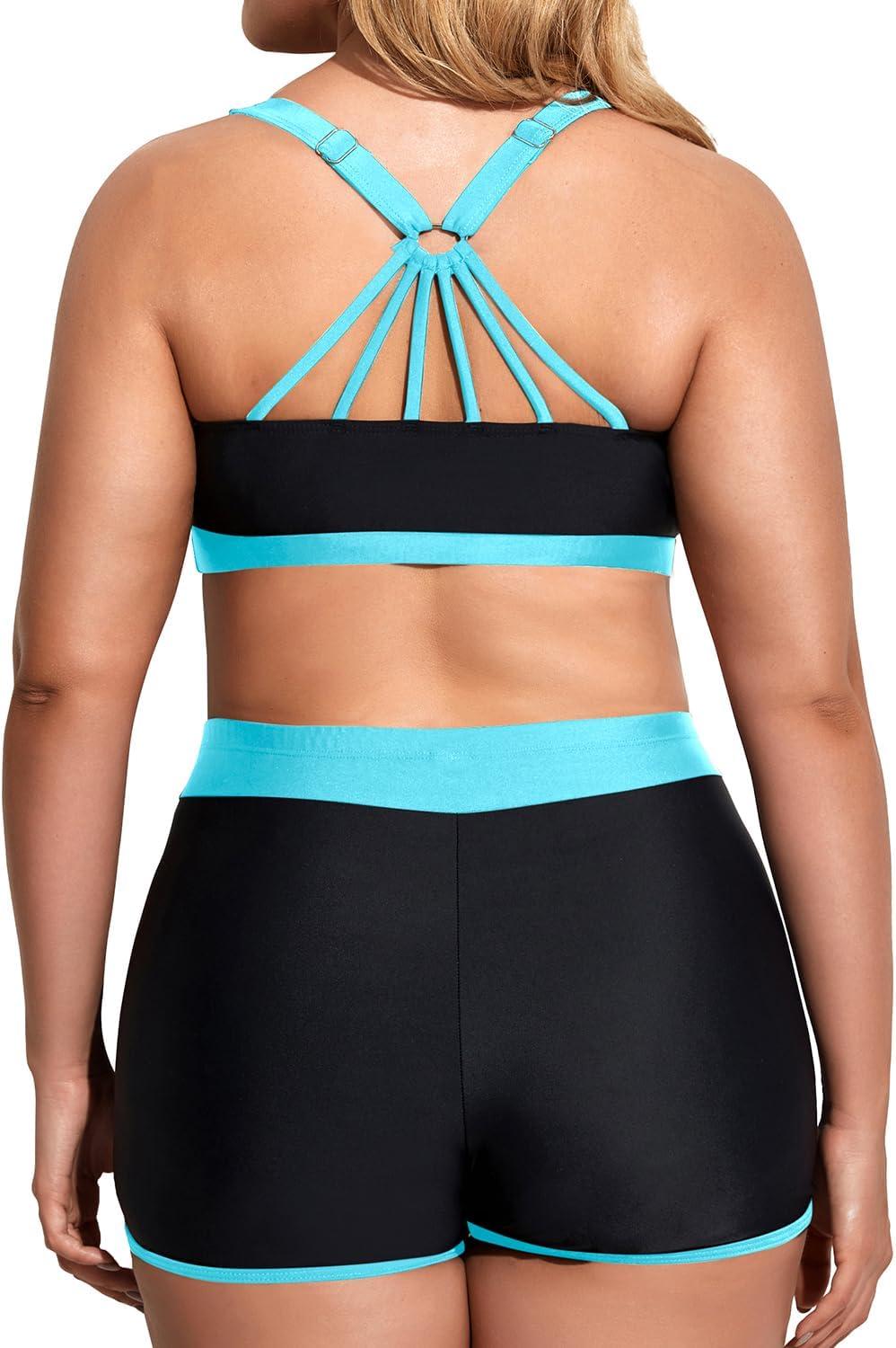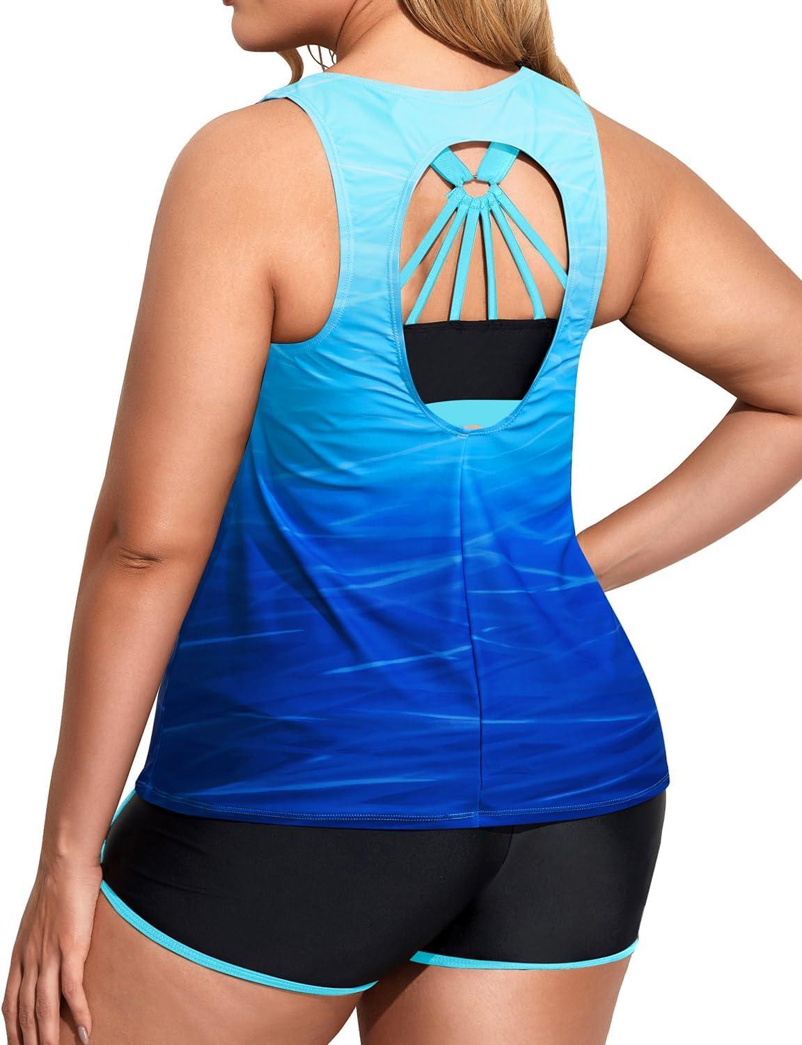 Holipick Women Plus Size 3 Piece Tankini Swimsuits(Blue Gradient)