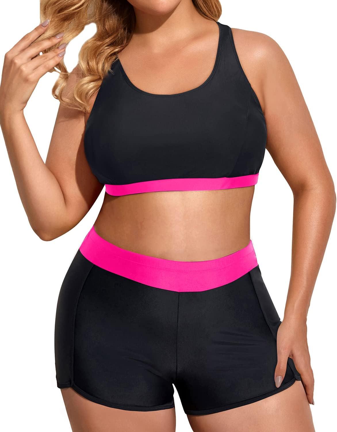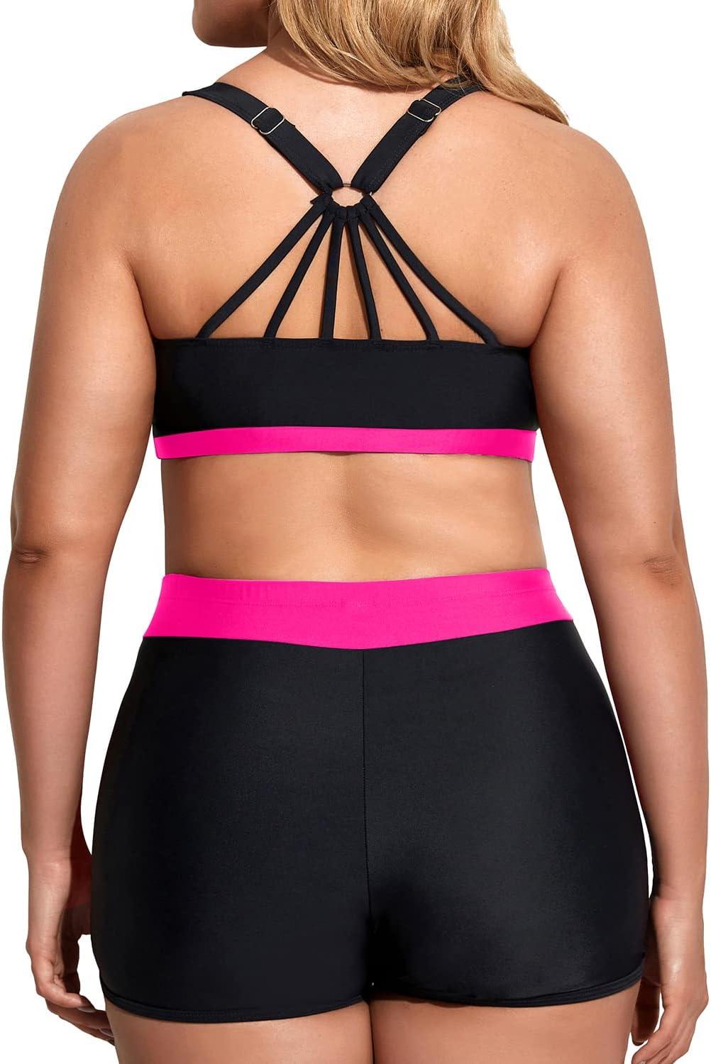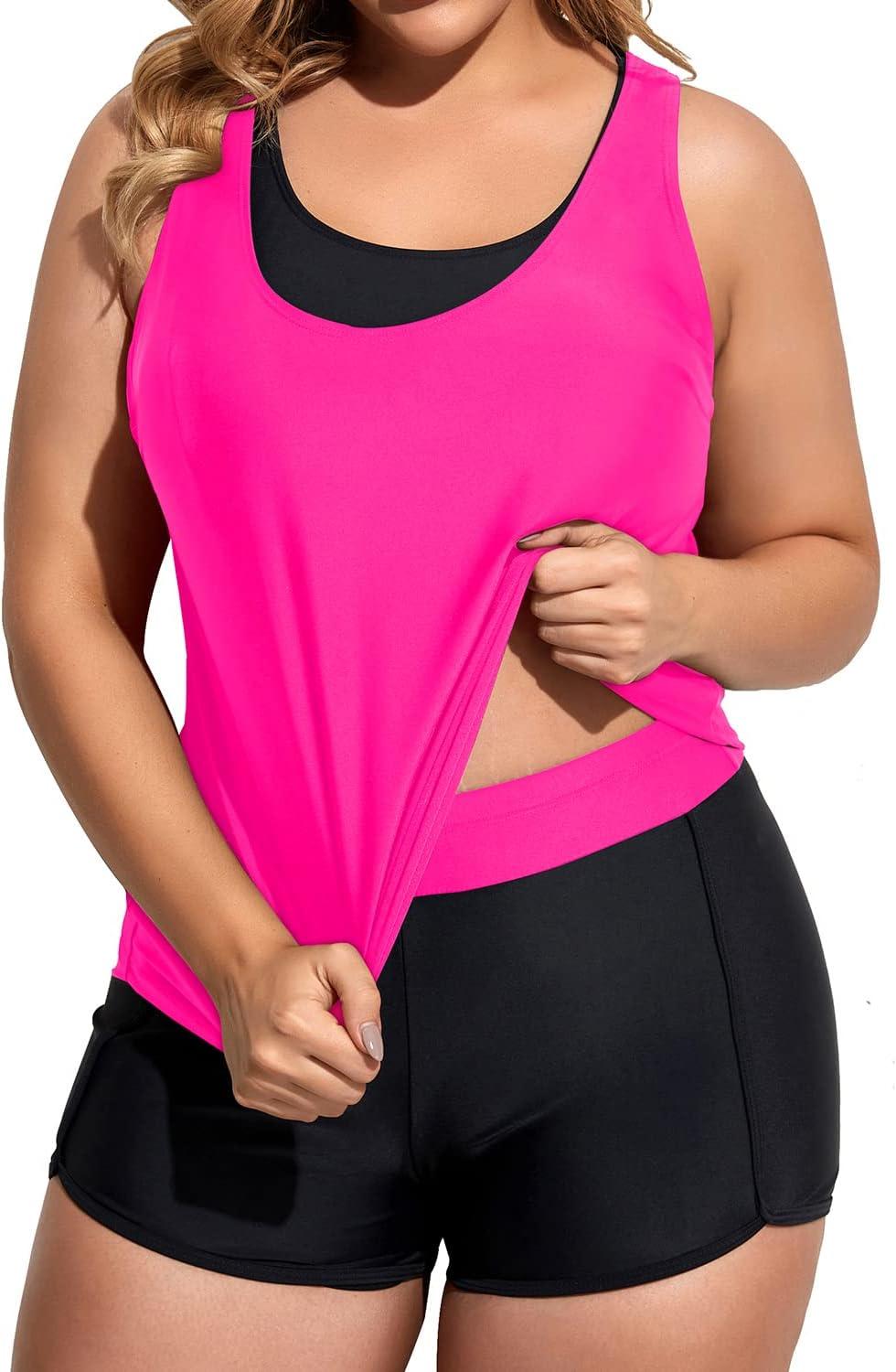 Holipick Women Plus Size 3 Piece Tankini Swimsuits(Hot Pink)