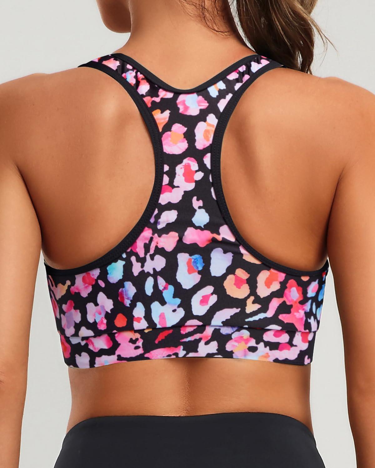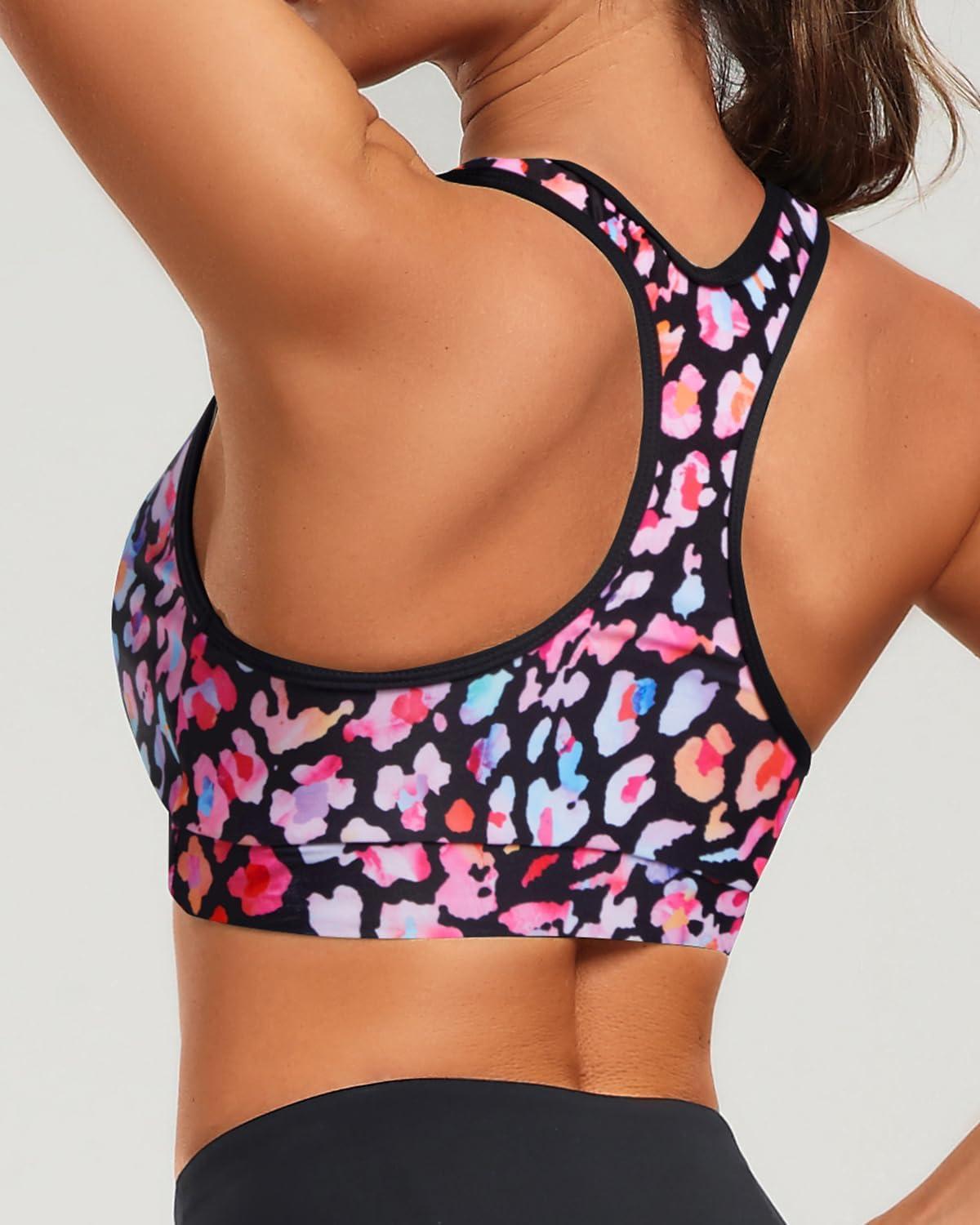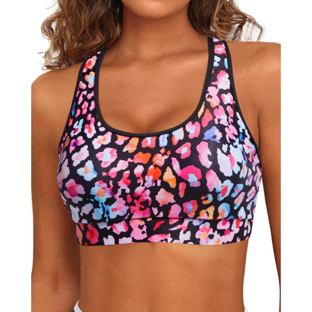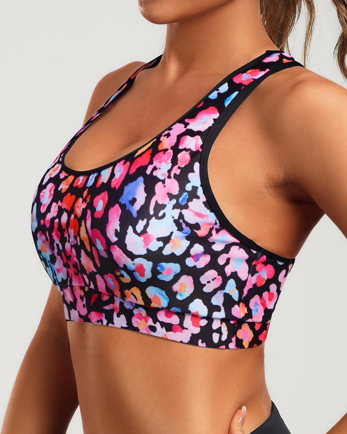 Holipick Women's Sports Bra Bikini Tops Racerback Swim Top Scoop Neck Bathing Suits Top Modest Padded Crop Tops Swimsuit Only(Colorful Leopard)